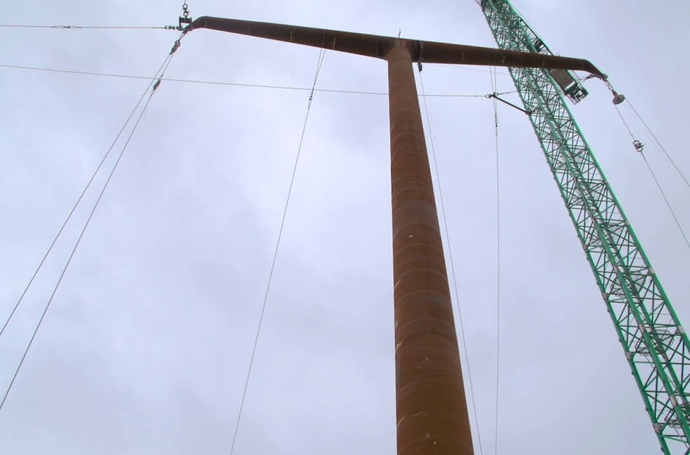 The most remarkable characteristic of the T-Pylon design is that all conductors are carried by a single attachment point. Traditionally, such a structure would have three separate arms - each carrying an individual conductor. This unique attachment point was studied closely to ensure its robustness and resistance to fatigue. Complex analysis and physical loading tests were carried out to simulate climatic conditions such as extreme winds and ice loads. Investigations were made into the dynamic performance of the structure under simulated vibrations.